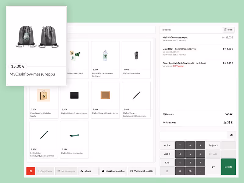 MyCashflow on kotimainen, monikanavaisen kaupankäynnin palvelu, jolla hallitset verkkokaupan, myymälän kassan, varaston ja markkinoinnin kätevästi yhdellä alustalla. Me huolehdimme puolestasi tekniikasta, tietoturvasta ja päivityksistä, jotta voit keskittyä olennaiseen, eli myynnin kasvattamiseen. MyCashflow on suunniteltu tehokkaaksi kasvun työkaluksi, jolla myyt ja markkinoit tuotteitasi monikanavaisesti – verkossa, myymälässä ja kaikkialla, missä asiakkaasi liikkuvat.